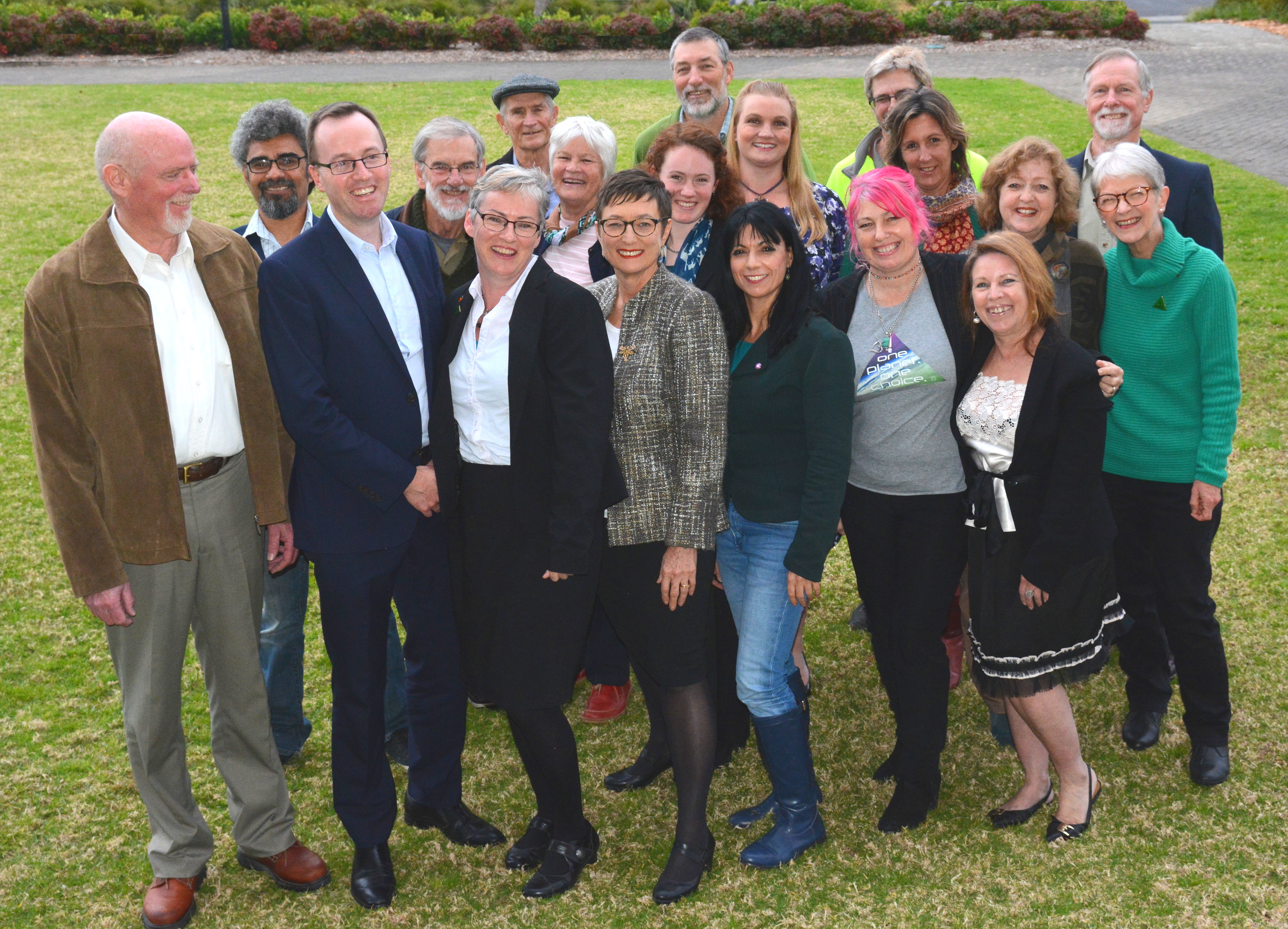 Below: Amanda Findley with David Shoebridge MLC NSW and the team of twelve candidates and supporters at the launch of the Shoalhaven Greens campaign.