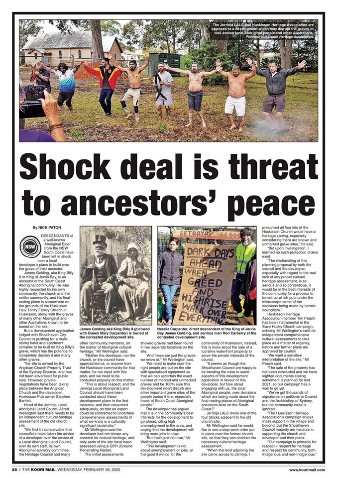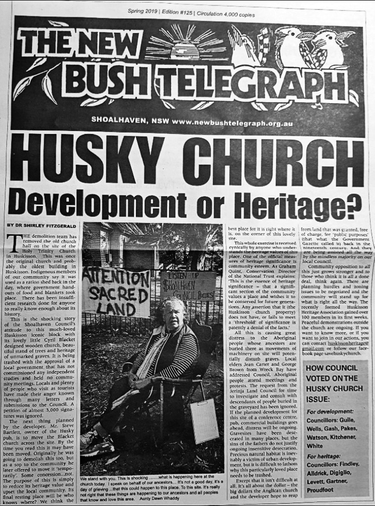 This article, published in this week’s Koori Mail, summarises Jerrinja LALC’s frustration and disappointment about the development of the Huskisson Church Site.