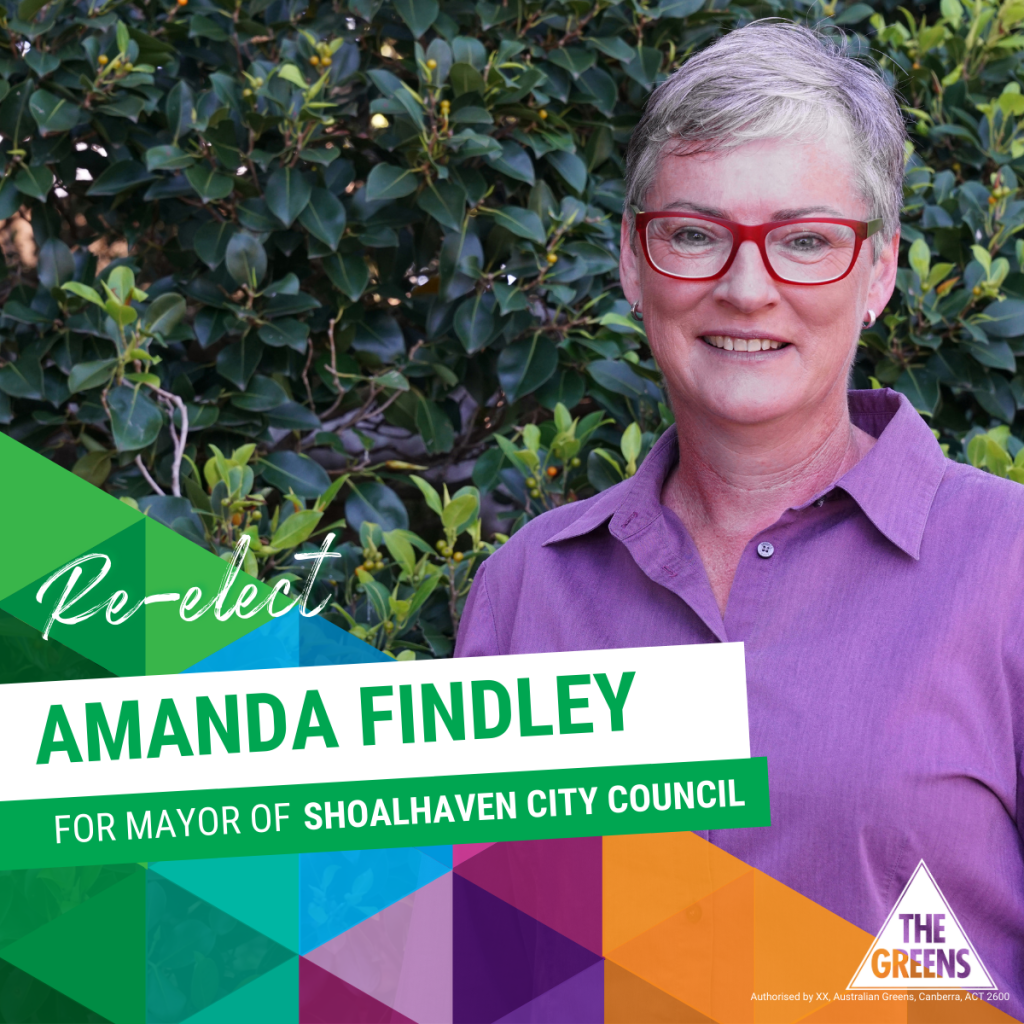 Get behind Mayor Amanda Findley and the Shoalhaven Greens. Honest, Compassionate Leadership.