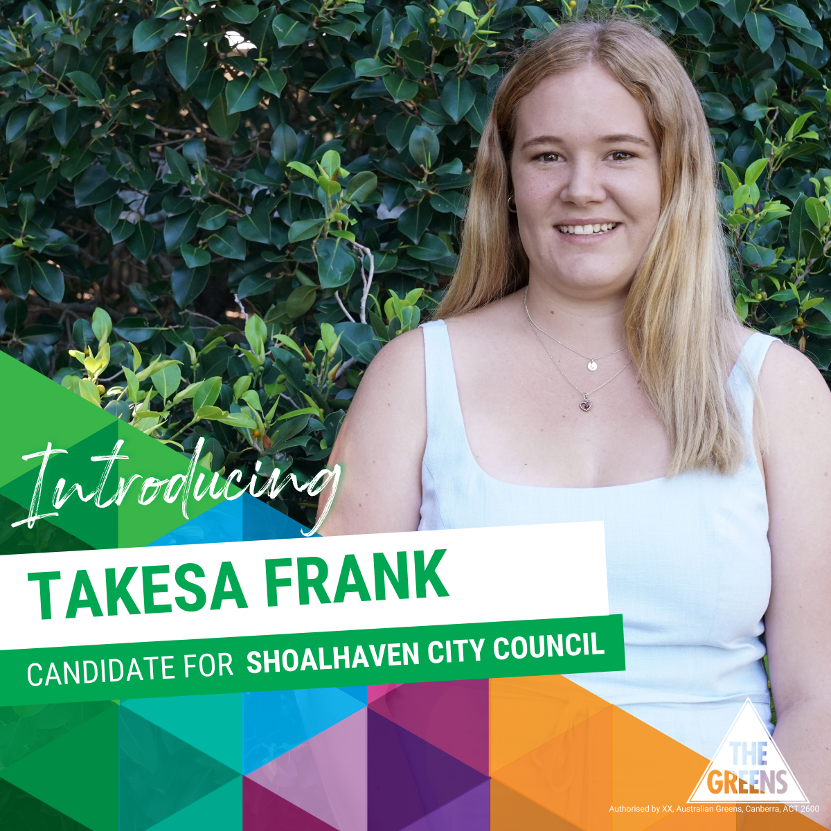 At just 19, Takesa Frank is the youngest candidate for the Greens Shoalhaven. But what she lacks in years, she makes up for with passion, commitment and enthusiasm.
