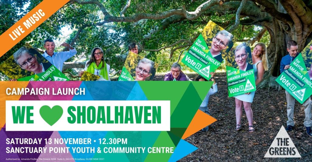 Everyone is invited to WE 💚 SHOALHAVEN, the official launch of the Shoalhaven Greens campaign to elect a dynamic, progressive council on December 4th.