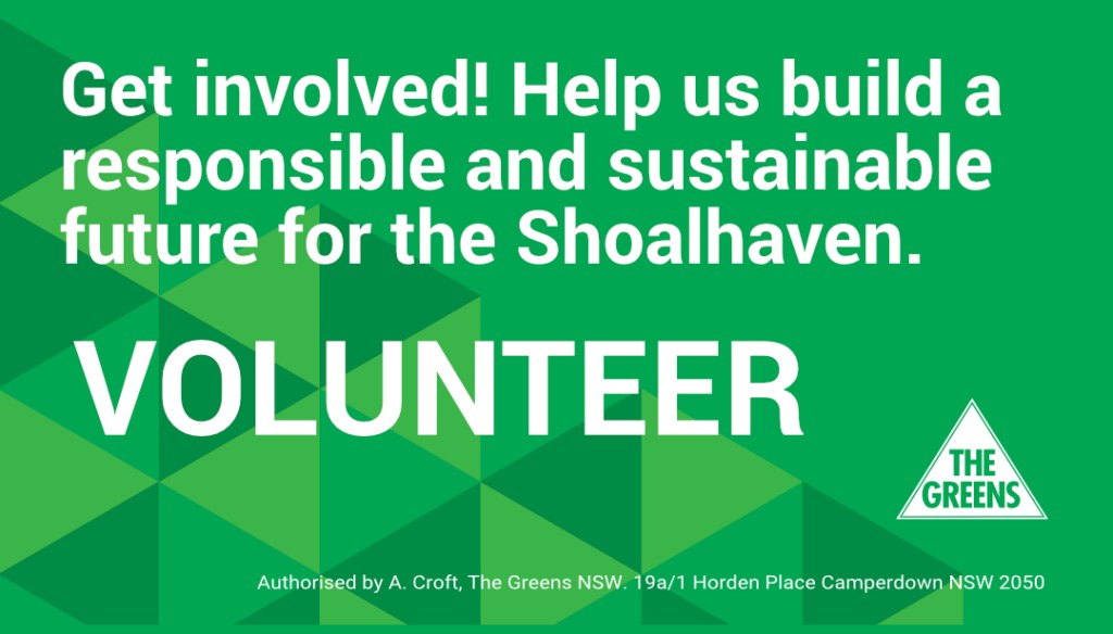 Shoalhaven Greens is a local group of the NSW Greens and the Australian Greens.